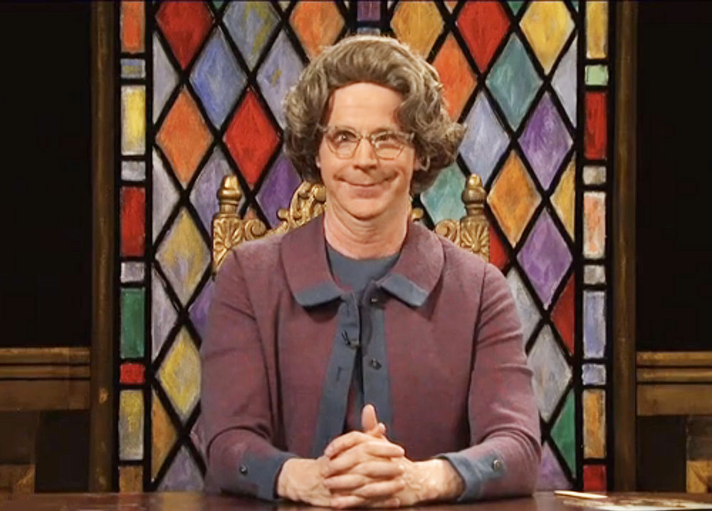 Joskus 1980-luvulla – siis sinä esihistoriallisena aikana, jolloin monet teistä eivät vielä edes uiskennelleet isienne kivespusseissa – Dana Carvey esitti Saturday Night Livessa hahmoa nimeltä Kirkkotäti. Kyseessä oli nappiin mennyt parodia tiukkapipoisesta, hypermoralistisesta kristitystä naisesta, joka jatkuvasti läksytti ja halvensi kanssaihmisiä heidän syntiensä tähden.