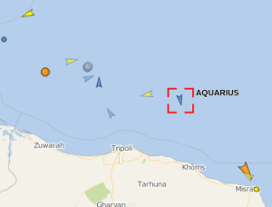 Alla oleva kuva näyttää ”meripelastusalus” Aquariuksen sijainnin tätä blogipäivitystä kirjoittaessa eli 25.6. klo 01:15. Alus on alle 100 km päässä Libyan rannikosta.