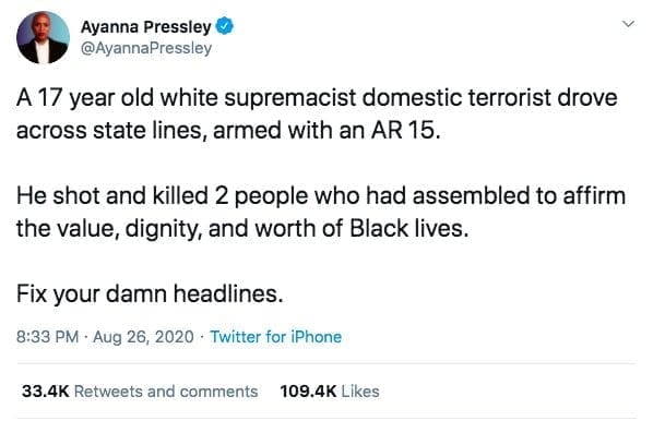 Tämän hetken yhteiskunnassa mikään ei vahingoita ihmistä enempää kuin hänen leimaamisensa valkoisen ylivallan kannattajaksi. Pressleyllä ei ole minkäänlaisia todisteita väitteelleen ja hän esittää sen siitä huolimatta. Hänellä ei ole perusteita puolustaa mellakoitsijoita ja hän tekee niin siitä huolimatta. Twiitillään hän edistää mustaa ylivaltaa, mikä on yhtä paljasta kuin hänen ruma päänsä.