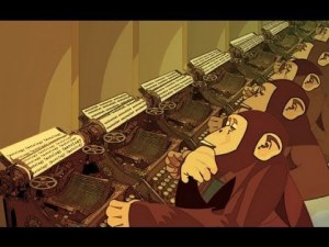 Ihmisen kekseliäisyyden huomioon ottaen tulevaisuudessa ei varmastikaan ole mahdotonta kirjoittaa kirjoja koneellisesti. Mutta eräänlainen mekanisaatio on jo havaittavissa elokuvassa ja radiossa, julkisuudessa ja propagandassa, ja journalismin alemmilla tasoilla. Esimerkiksi Disneyn elokuvat tehdään olennaisilta osin tehdastuotantona, työn suorittavat osin koneet ja osin piirtäjäryhmät, joiden täytyy luopua yksilöllisestä tyylistään. Radio-ohjelmia kirjoittavat yleensä väsyneet työjuhdat, joille aihe ja sen käsittelytapa sanellaan etukäteen, ja heidänkin kirjoittamansa on pelkkää raakamateriaalia, jotka tuottajat ja sensorit kasaavat lopulliseen muotoon. Sama pätee valtion virastojen tuottamiin lukemattomiin kirjoihin ja kirjasiin. Vielä konemaisempaa on novellien, jatkokertomusten ja runojen tuottaminen halpoihin lehtiin. Writerin kaltaiset julkaisut ovat tulvillaan kirjoittajakoulujen mainoksia, jotka tarjoavat valmiita juonia muutamalla shillingillä. Jotkut niistä antavat juonen lisäksi jokaisen luvun alku- ja loppulauseen. Toiset varustavat kirjoittajan eräänlaisella matemaattisella kaavalla, jonka avulla voi rakentaa juonia itse. Toiset tarjoavat eri henkilöhahmoin ja tilantein varustettuja korttipakkoja, jotka tarvitsee vain sekoittaa ja jakaa tuottaakseen automaattisesti näppäriä tarinoita. Luultavasti jollakin näistä keinoista tuotettaisiin kirjallisuutta totalitaarisessa yhteiskunnassa, jos kirjallisuutta vielä pidettäisiin tarpeellisena. Mielikuvitus – ja mahdollisimman pitkälle myös tietoisuus – eliminoitaisiin kirjoitusprosessista. Kirjoja suunnittelisivat pääpiirteissään byrokraatit, ja ne kulkisivat niin monien käsien kautta, ettei lopputuote olisi sen yksilöllisempi kuin Ford-auto tuotantolinjan päässä. On sanomattakin selvää, että mikä tahansa tällä tavoin tuotettu olisi roskaa; mutta kaikki muu kuin roska vaarantaisi valtiollisen järjestyksen. Jäljellä oleva vanhempi kirjallisuus pitäisi puolestaan kieltää tai ainakin kirjoittaa suurelta osin uusiksi.